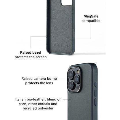 – Enveloppé dans du cuir bio italien fabriqué à partir de maïs et d'autres céréales mélangés à du polyester recyclé. Il a la même texture que le cuir, vieillit comme le cuir, mais est plus respectueux de la planète.